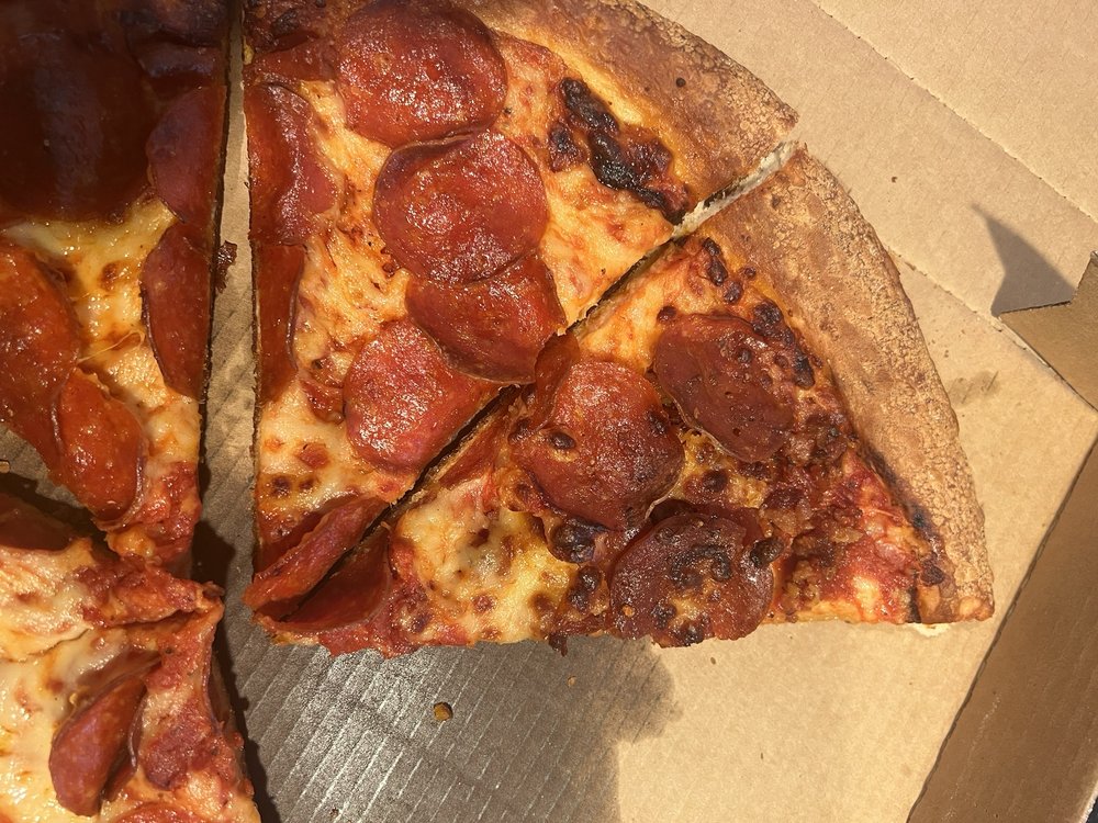 Pepperoni Pizza, Chzstx, Brownie & Drinks