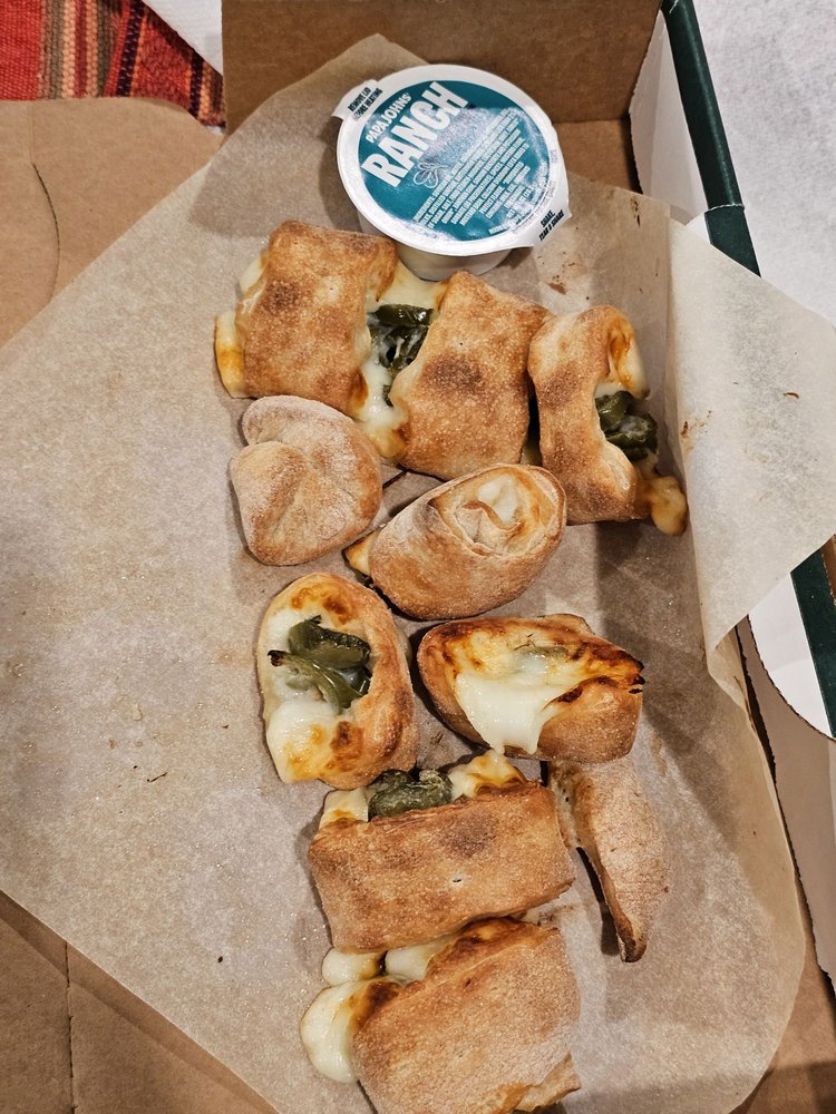 Eight spicy bites of flavorful jalapeños, creamy alfredo sauce, and our signature cheese wrapped in our original fresh dough. Baked fresh and served with ranch dipping sauce on the side.